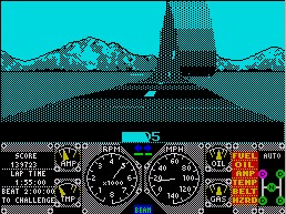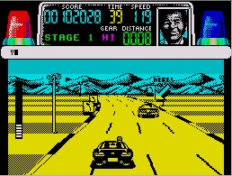 「ドラゴンスピリット」をリリースしたドマーク社は、アタリゲームズ作品の移植を数多く手がけていたことでも知られるソフトハウスです。その彼らが成し遂げた、まさかの快挙。8ビット機でこのゲームを動かしてみせた技術力にはただただ驚嘆するしかありません (実はコモドール64版も出ているのですが、完成度はスペクトラム版のほうが高い)。もちろん完全移植というわけにはいかず、秒間フレーム数が大きく落ちるために動きはガクガクですが、それでもプレイに耐えないというほどではありません。プレイアビリティを減退させているのは、むしろセンタリングをいちいち眼で確認しなければならないハンドル操作のほうでしょう。これのおかげでゲームプレイは相当厳しいものになっています。その他の点では細部までよくこだわった入魂のプログラムで、もちろんリプレイモードも用意されています。