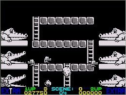 海外製パソコンにおけるアーケード移植のやる気のなさは頻々語り草になるところですが、MSX以下の性能しかないZXスペクトラムの場合はやる気どうこう以前の問題で、大半はゲームとして成立させるだけで精一杯といった態。本当にクリアできるのか疑わしいものがごろごろしています。